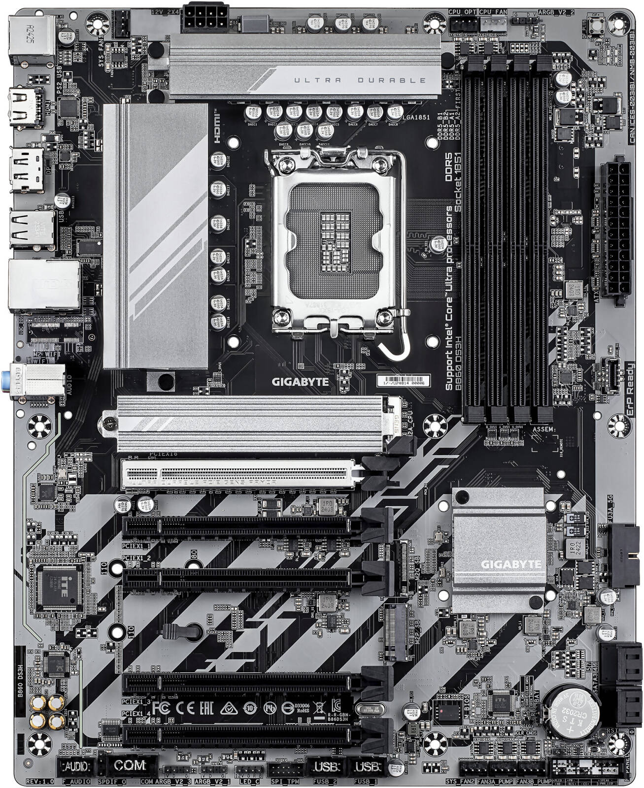 GIGABYTE B860 DS3H LGA 1851 ATX Motherboard, Intel B860 Express Chipset, 4x DDR5 DIMM Slots, Up to 256GB Max Memory, 1x PCIe 5.0 x16, 2x M.2 Slots | B860-DS3H